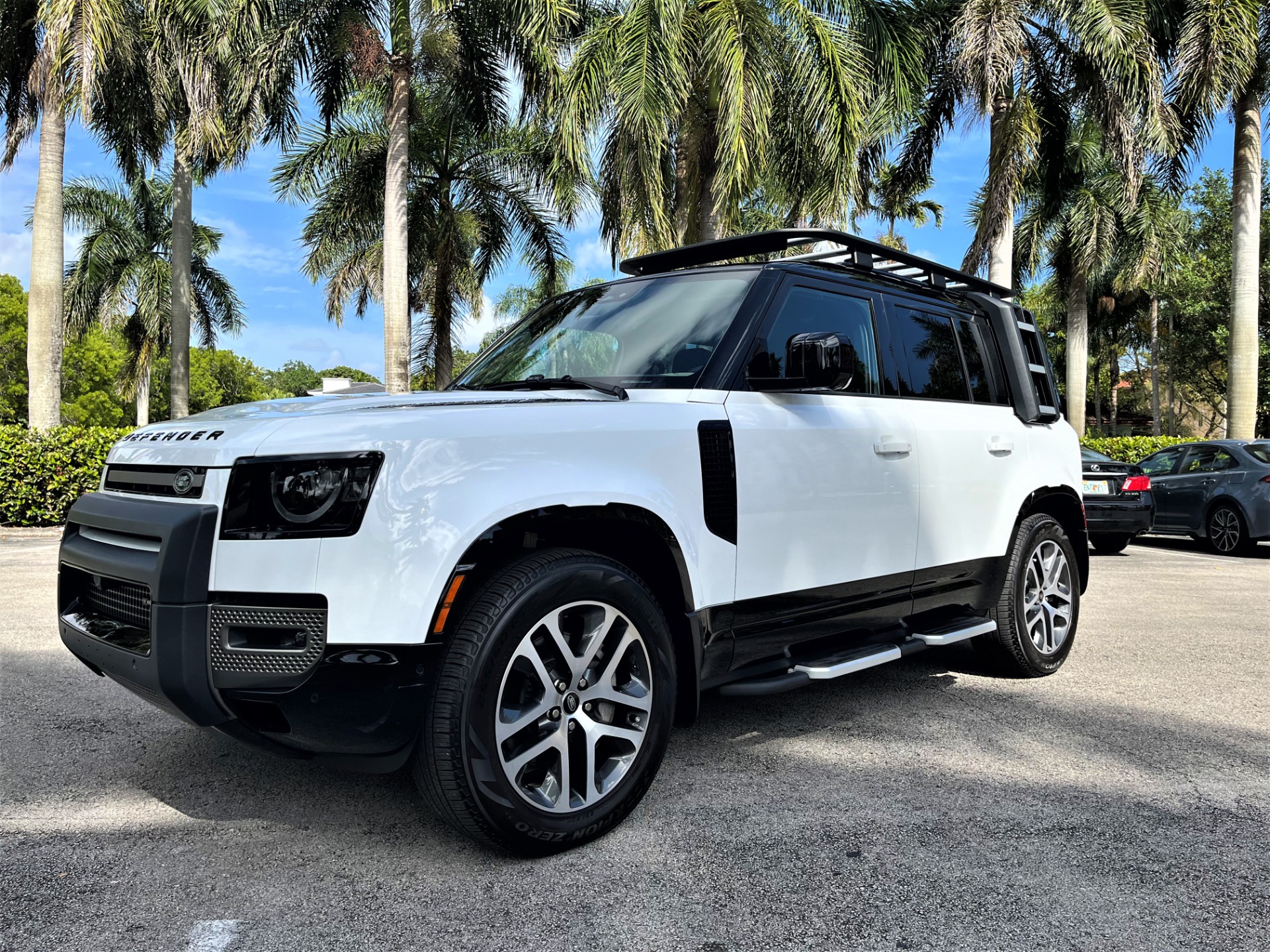 We Ship Nationwide. The Gables Sports Cars is proud to present, fully equipped, perfect color combination, full factory warranty, 1 Owner Clean CarFax and AutoCheck, Range Rover Defender 110 X- Dynamic SE. This top of the line model comes with more powerful engine, roof rack, side steps, climbing stairs, front bumper guard, exterior carrying box and much more.